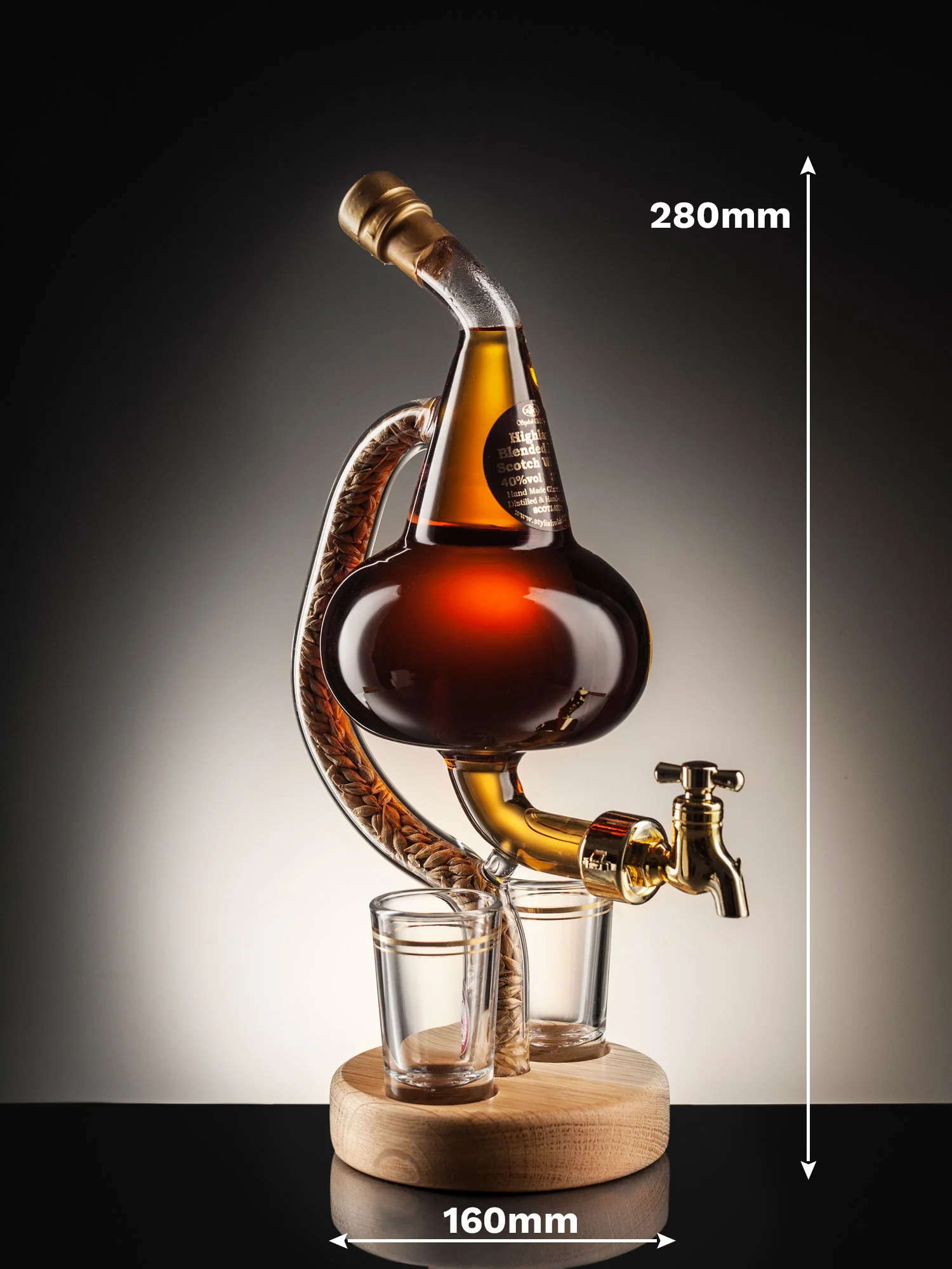 High quality Pot Still Decanter with Tap & 2 Glasses